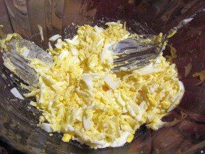 Затем оформляем середину каждого мака – из майонеза делаем сердцевину и посыпаем ее черным кунжутом. Листья маков делаем из петрушки. Получается очень красиво.