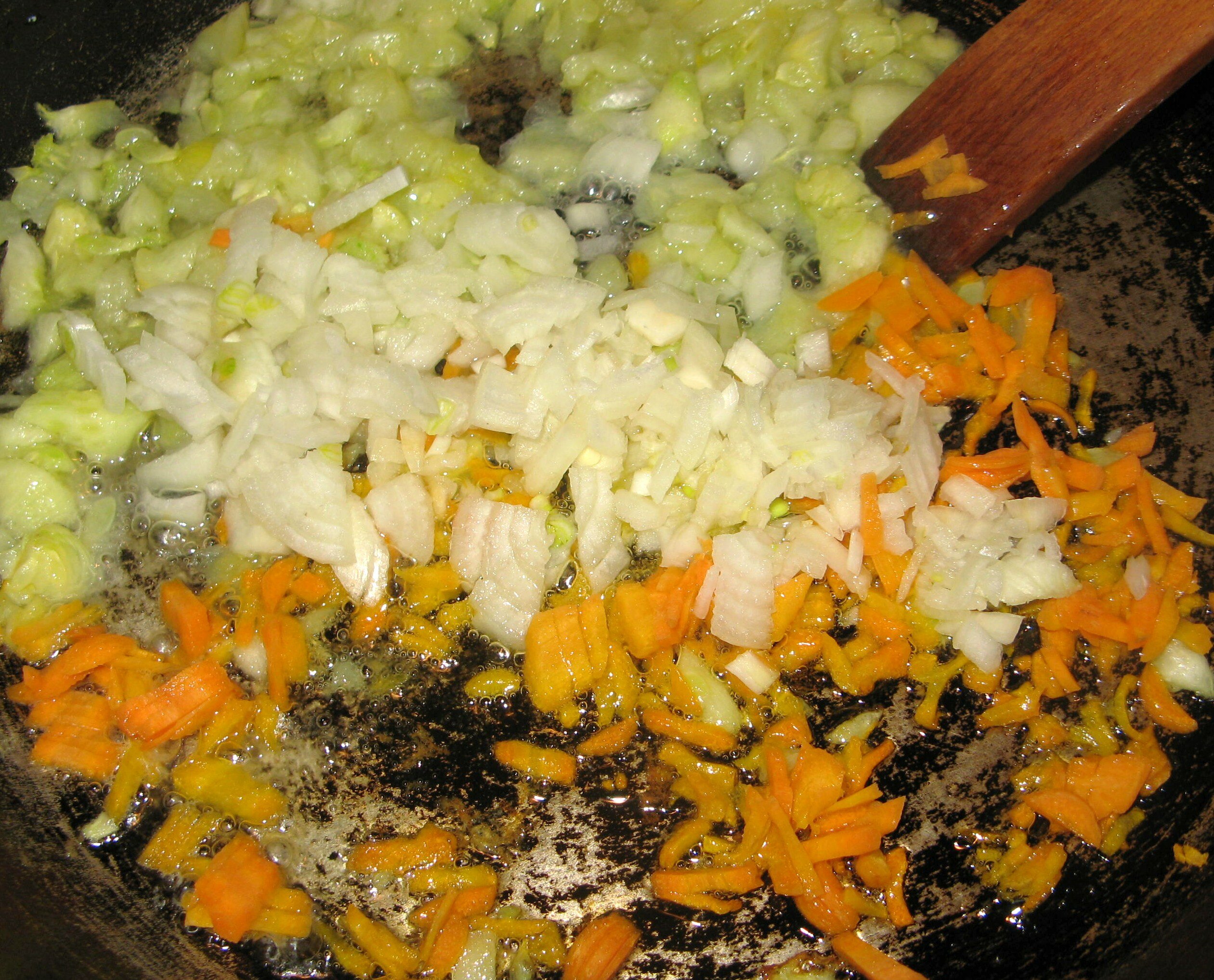 Молоденькие кабачки моем, не очищаем. Вырезаем фигурно крышечку, аккуратно выбираем нежную сердцевину. Затем мелко порезать сердцевину, морковь и репчатый лук. Все это слегка обжарить на сковороде, добавив растительного масла.