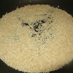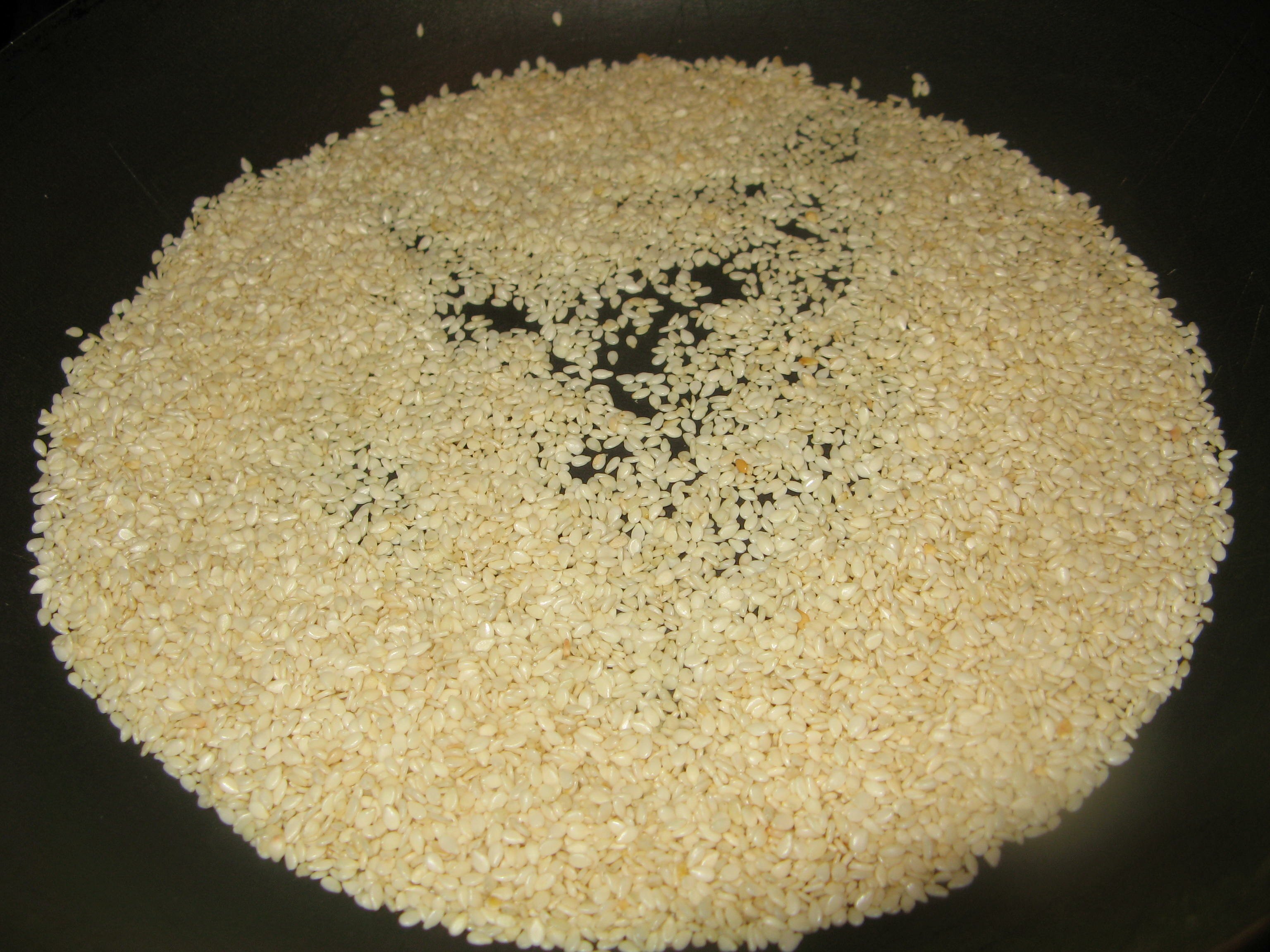 На сковороде без масла обжариваем кунжут до приобретения золотистого цвета.