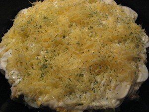 Затем посыпаем тертым сыром, зеленью
