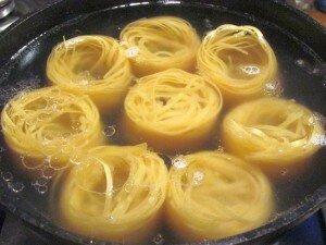 Макаронные гнезда аккуратно погружаем